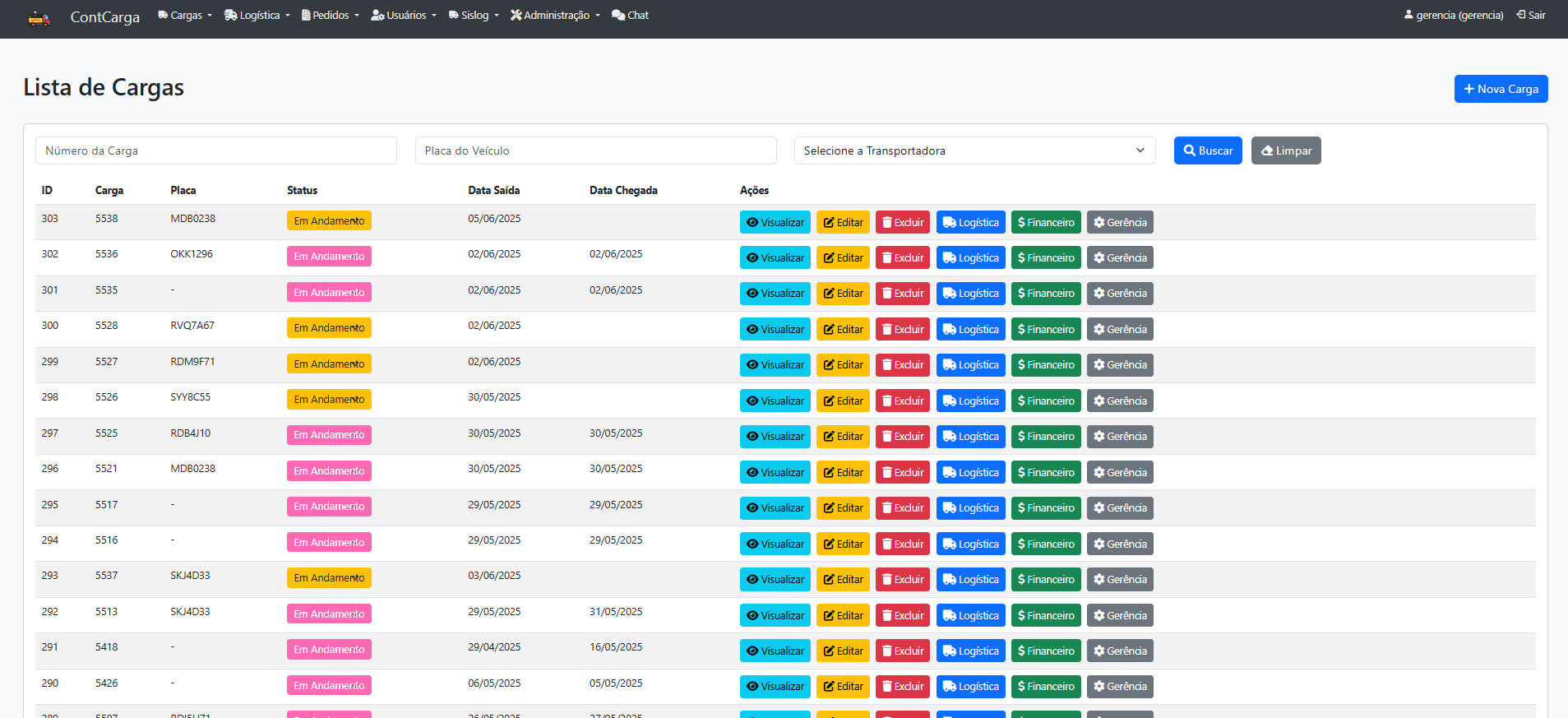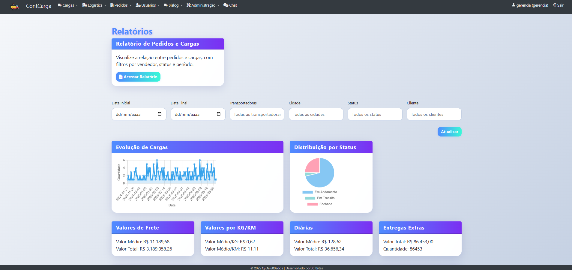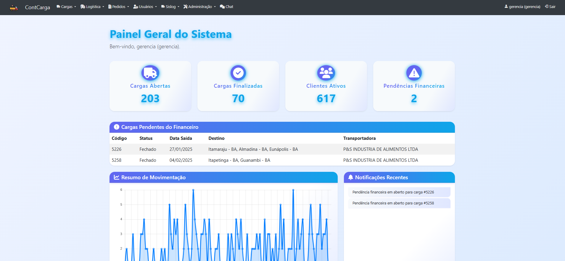 Complete logistics management solution developed to optimize and control cargo transportation operations. The system offers an intuitive interface and advanced features for efficient fleet, driver, and load management with real-time tracking and comprehensive reporting.